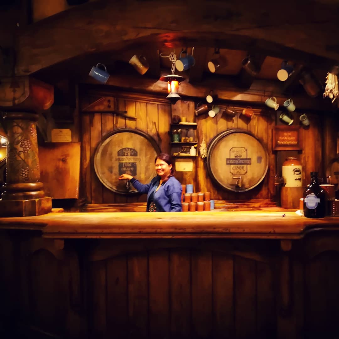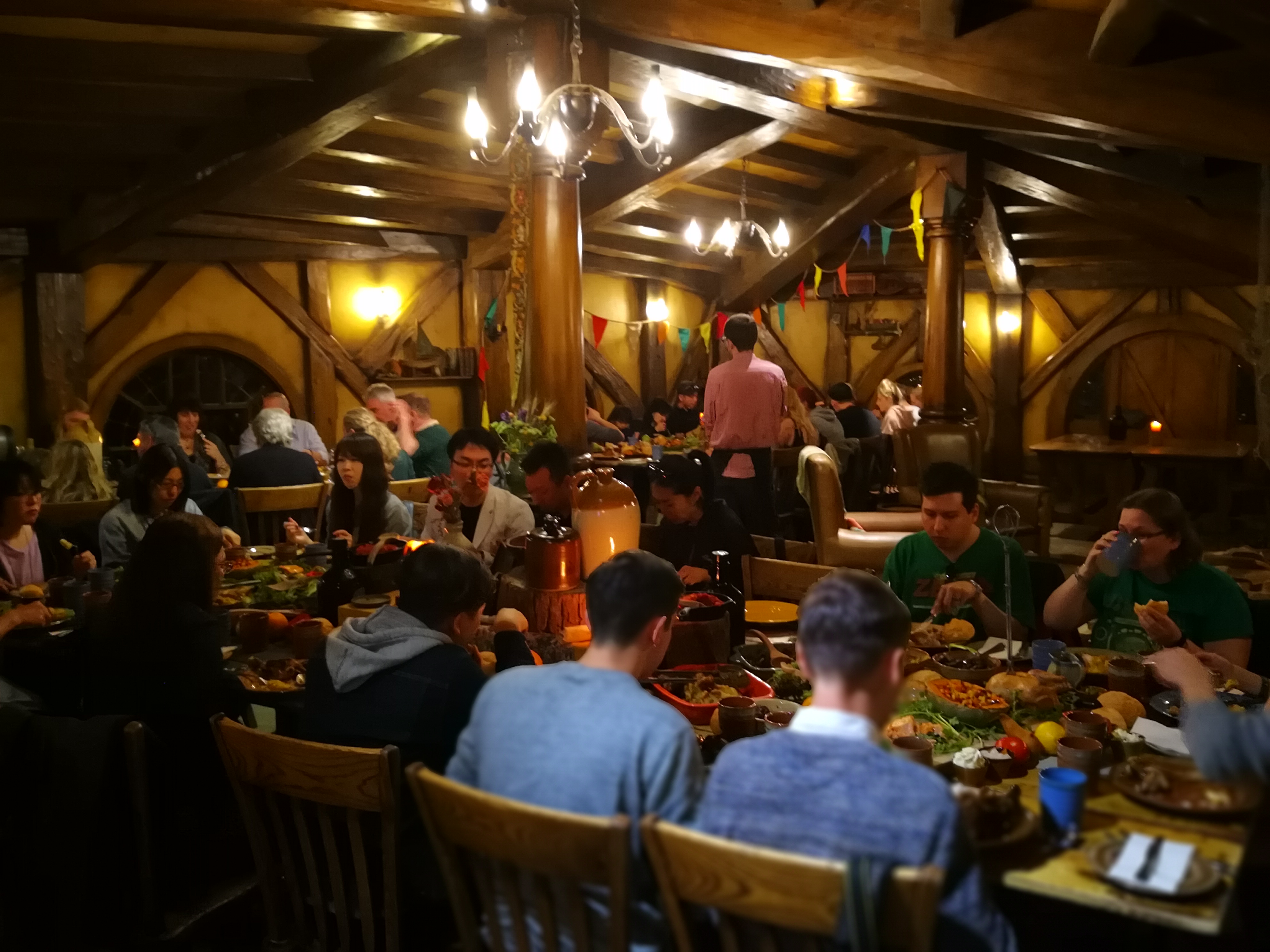 At the end of the walk, our party guides brought us to The Green Dragon Inn alive with hobbit party music for a pre-dinner drink.