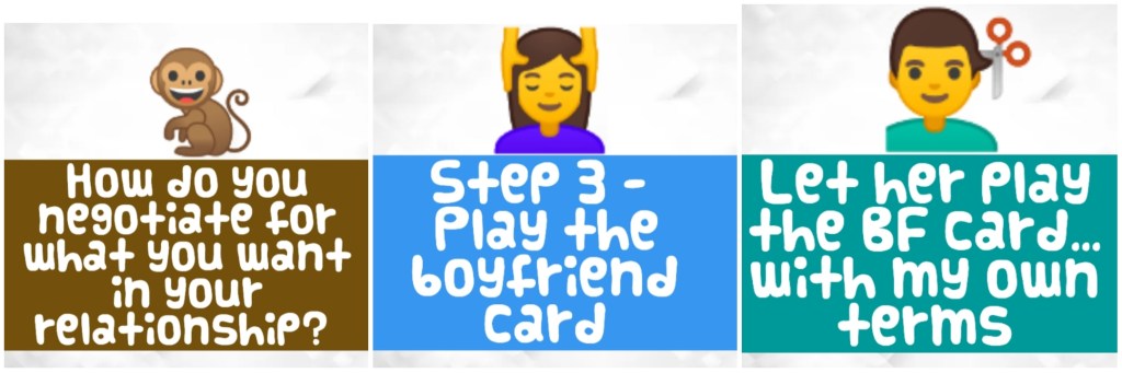 Him, “I was ready to go with you when you played the boyfriend card. I want you to be happy.”